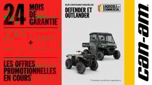 - Modèles admissibles : Tous les modèles Commander, Defender, et Outlander 2025 et 2026 neufs et non utilisés (sauf les véhicules de démonstration, les modèles Maverick, ensembles X mr, les modèles Renegade, et les modèles jeunes)
