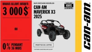 Rabais jusqu’à 3 000 $ ou 0 % pendant 36 mois sur certains modèles Can-Am Maverick X3 2025