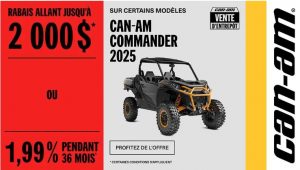Rabais jusqu’à 2 000 $ ou 1,99 % pendant 36 mois sur certains modèles Can-Am Commander 2025